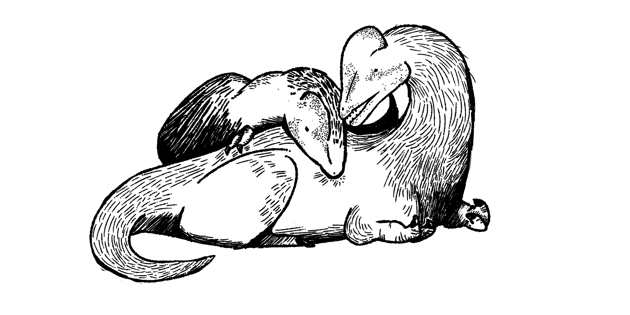 I wanted to entertain my fascination with comparing dinosaurs to modern animals. This zine is a loose collection of illustrations showing dinosaurs behaving like or interacting with familiar living animals. It emphasizes without words how dinosaurs are equal part alien and animal. They interacted with their ecosystems just as vibrantly and consciously as any other animal.